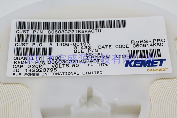 KEMET陶瓷電容 0603 50V 220PF C0603C221K5RACTU